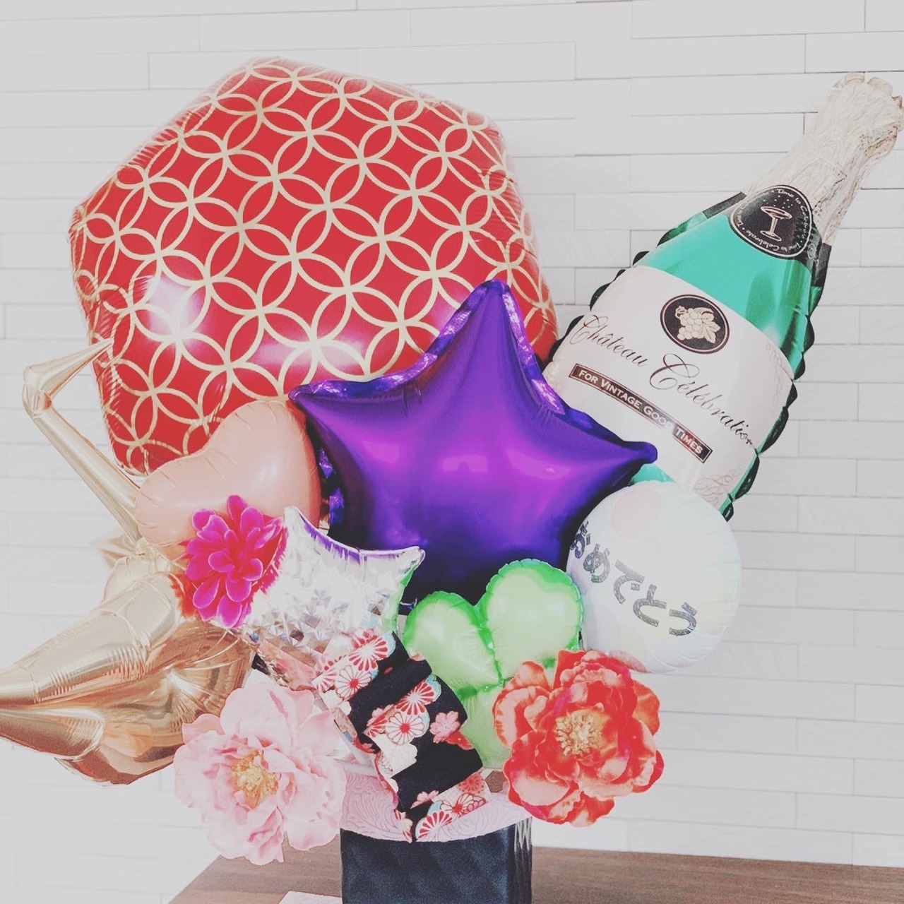 開店祝い、周年祝いにぴったりの和テイストのバルーンです。それ以外にも、少し落ち着いた雰囲気でバルーンを贈りたい!とお考えの方にもピッリです。
